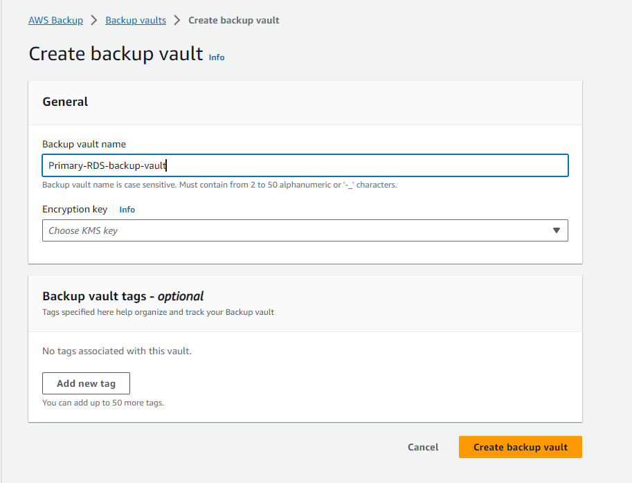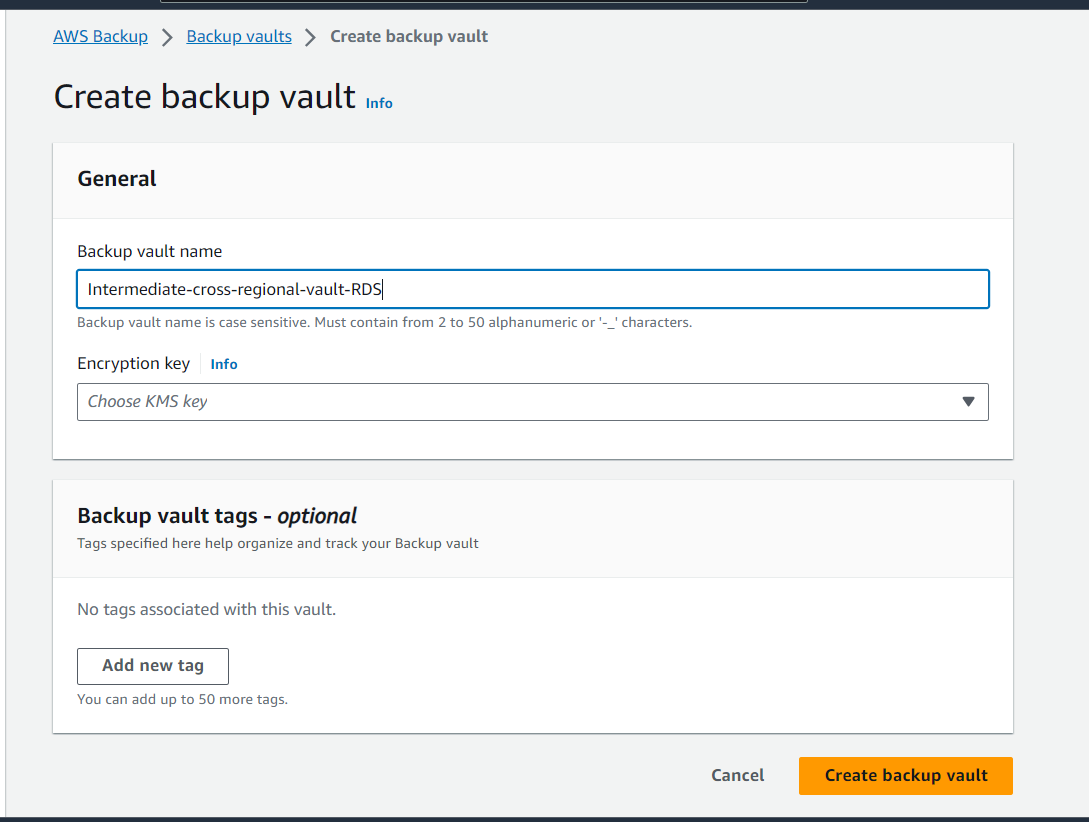 1. Create a Backup Vault in Backup Account (Backup Region)