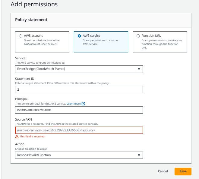 - Add Resource-Based Policy to Lambda Function