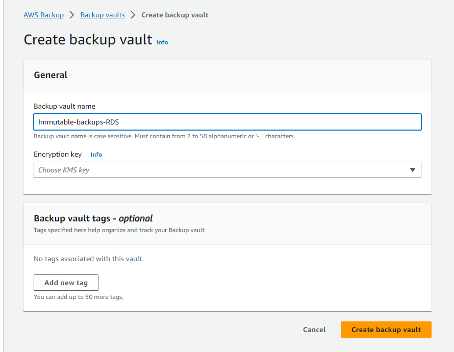 By following these steps, you'll successfully implement a robust cross-account, cross-regional immutable backup solution for your RDS instances using AWS Backup, ensuring the safety and integrity of your critical data.