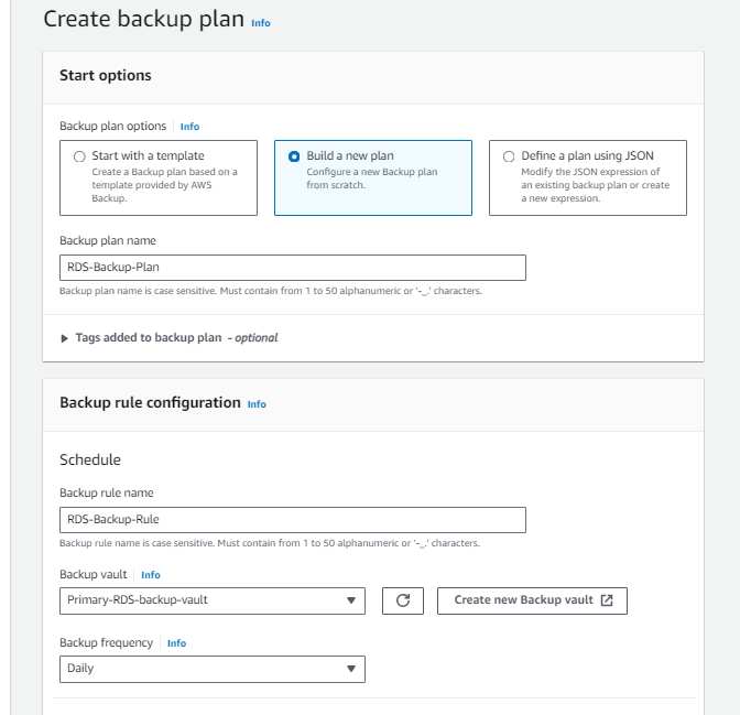 6. Create a Backup Plan for RDS in Workload Account