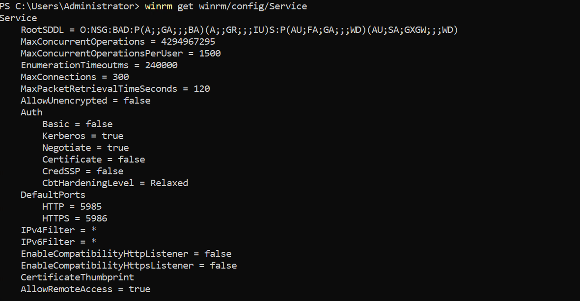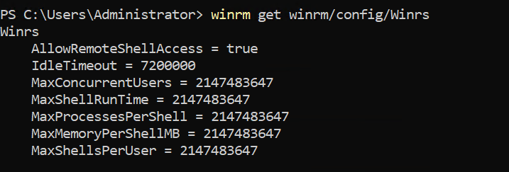 winrm get winrm/config/Servicewinrm get winrm/config/Winrs