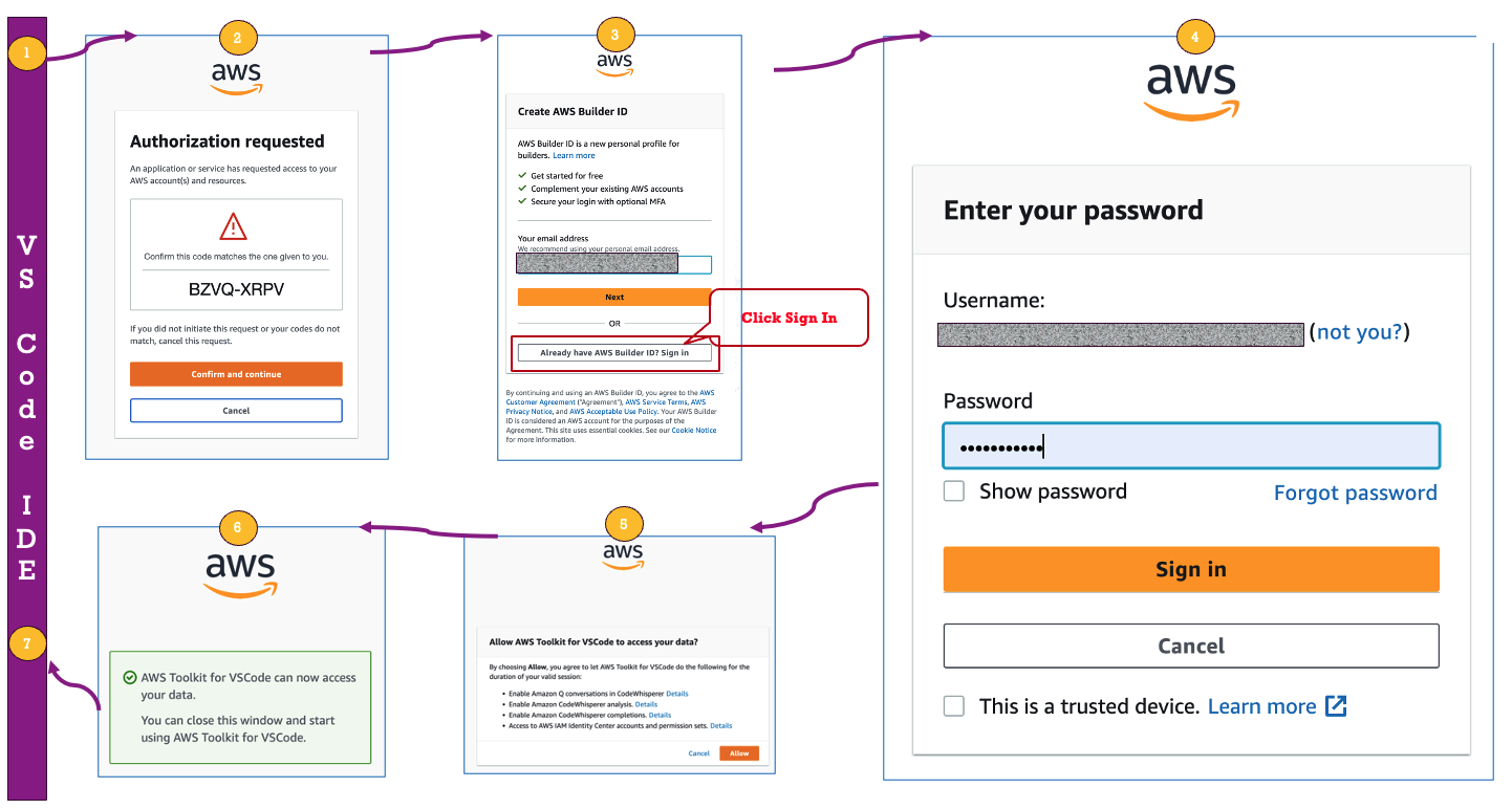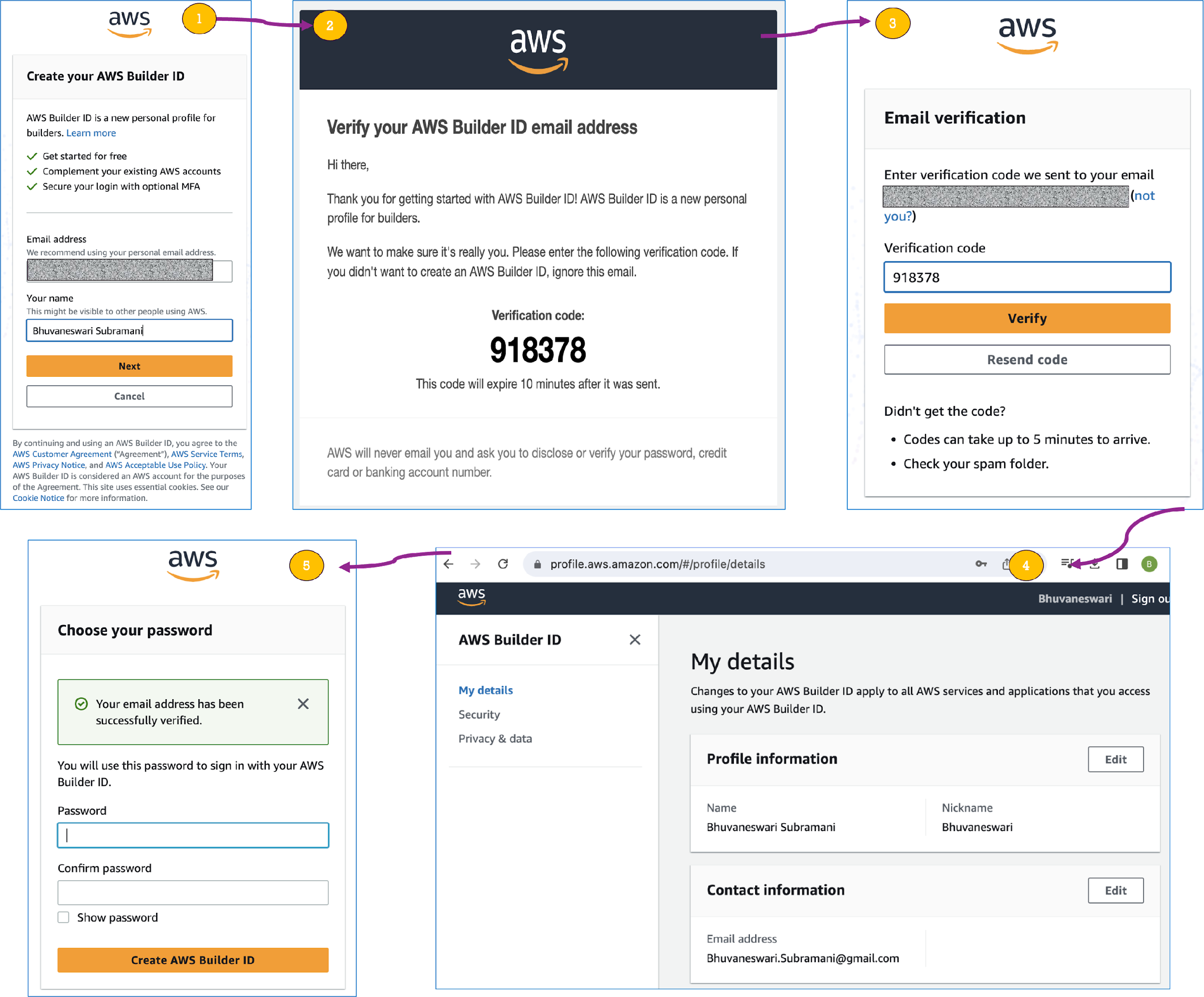 - Create BuilderID using instructions provided Here you go with the flow of steps