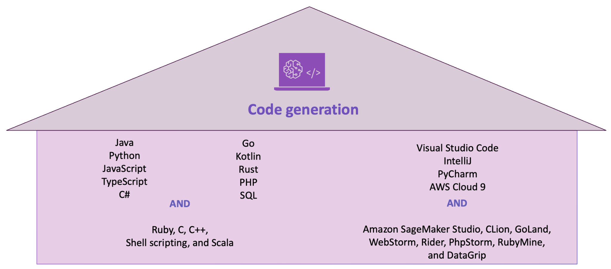 Note: CodeWhisperer comes built in with AWS Cloud9, the AWS Lambda console, Amazon SageMaker Studio and is also available as extensions to popular IDEs including Visual Studio Code, IntelliJ, PyCharm etc.