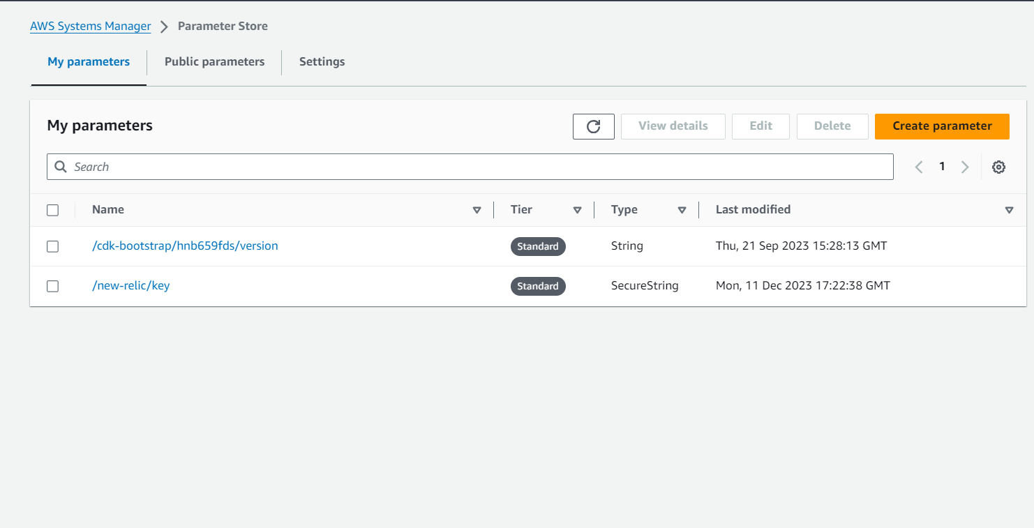 Replace with the name of the Key stored in Parameter store during initial steps. - New Relic Account ID: