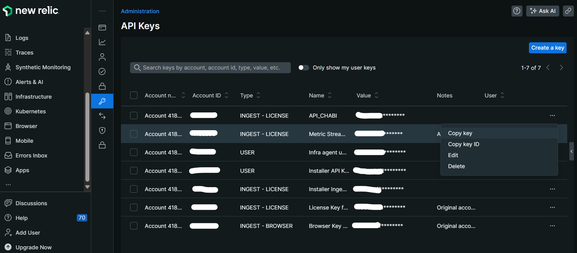 Copy the Account ID and replace it in the place of highlighted field <NEW RELIC ACCOUNT ID>