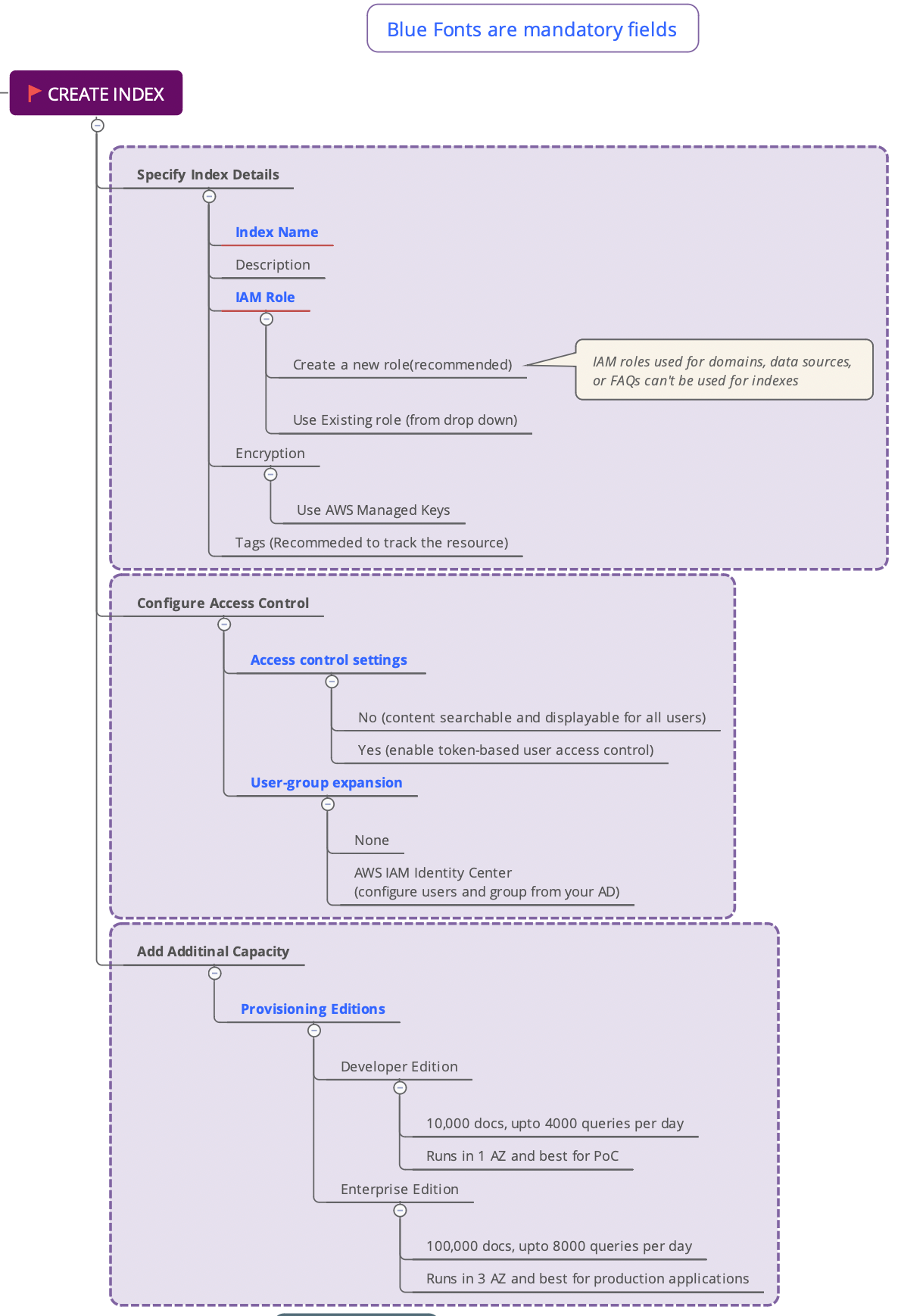 - Follow the instructions in the below image to create the index in Amazon Kendra