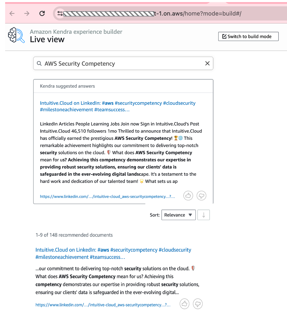 https://<unique-id>..search.kendra.us-east-1.on.aws/home#/