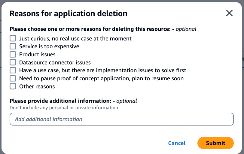 I had created an application in Amazon Q integrated with the same data source and peeped into it after the Kendra index was deleted. Got this message!!