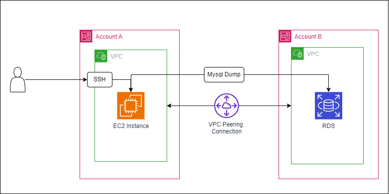 | Create VPC Peering Connection | Establish a peering connection between the VPCs. | - Go to the VPC console in the AWS account of the EC2 instance. - Create a peering connection to the VPC in the RDS account. - Accept the peering request in the RDS account. |