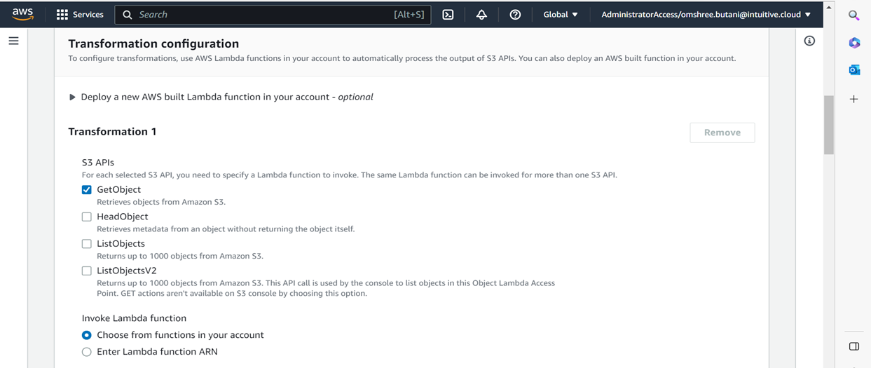 - Go to the S3 console and select "Object Lambda Access Points" from the menu on the left-hand side.