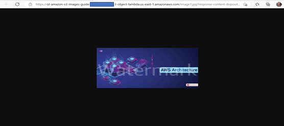 cat << EOF > lambda.pyimport boto3import jsonimport osimport loggingfrom io import BytesIOfrom PIL import Image, ImageDraw, ImageFontfrom urllib import requestfrom urllib.parse import urlparse, parse_qs, unquotefrom urllib.error import HTTPErrorfrom typing import Optionallogger = logging.getLogger('S3-img-processing')logger.addHandler(logging.StreamHandler())logger.setLevel(getattr(logging, os.getenv('LOG_LEVEL', 'INFO')))FILE_EXT = {'JPEG': ['.jpg', '.jpeg'],'PNG': ['.png'],'TIFF': ['.tif']}OPACITY = 64 # 0 = transparent and 255 = full soliddef get_img_encoding(file_ext: str) -> Optional[str]:result = Nonefor key, value in FILE_EXT.items():if file_ext in value:result = keybreakreturn resultdef add_watermark(img: Image, text: str) -> Image:font = ImageFont.truetype("AmazonEmber_Rg.ttf", 82)txt = Image.new('RGBA', img.size, (255, 255, 255, 0))if img.mode != 'RGBA':image = img.convert('RGBA')else:image = imgd = ImageDraw.Draw(txt)# Positioning Textwidth, height = image.sizetext_width, text_height = d.textsize(text, font)x = width / 2 - text_width / 2y = height / 2 - text_height / 2# Applying Textd.text((x, y), text, fill=(255, 255, 255, OPACITY), font=font)# Combining Original Image with Text and Savingwatermarked = Image.alpha_composite(image, txt)return watermarkeddef handler(event, context) -> dict:logger.debug(json.dumps(event))object_context = event["getObjectContext"]# Get the presigned URL to fetch the requested original object# from S3s3_url = object_context["inputS3Url"]# Extract the route and request token from the input contextrequest_route = object_context["outputRoute"]request_token = object_context["outputToken"]parsed_url = urlparse(event['userRequest']['url'])object_key = parsed_url.pathlogger.info(f'Object to retrieve: {object_key}')parsed_qs = parse_qs(parsed_url.query)for k, v in parsed_qs.items():parsed_qs[k][0] = unquote(v[0])filename = os.path.splitext(os.path.basename(object_key))# Get the original S3 object using the presigned URLreq = request.Request(s3_url)try:response = request.urlopen(req)except HTTPError as e:logger.info(f'Error downloading the object. Error code: {e.code}')logger.exception(e.read())return {'status_code': e.code}if encoding := get_img_encoding(filename[1].lower()):logger.info(f'Compatible Image format found! Processing image: {"".join(filename)}')img = Image.open(response)logger.debug(f'Image format: {img.format}')logger.debug(f'Image mode: {img.mode}')logger.debug(f'Image Width: {img.width}')logger.debug(f'Image Height: {img.height}')img_result = add_watermark(img, parsed_qs.get('X-Amz-watermark', ['Watermark'])[0])img_bytes = BytesIO()if img.mode != 'RGBA':# Watermark added an Alpha channel that is not compatible with JPEG. We need to convert to RGB to saveimg_result = img_result.convert('RGB')img_result.save(img_bytes, format='JPEG')else:# Will use the original image format (PNG, GIF, TIFF, etc.)img_result.save(img_bytes, encoding)img_bytes.seek(0)transformed_object = img_bytes.read()else:logger.info(f'File format not compatible. Bypass file: {"".join(filename)}')transformed_object = response.read()# Write object back to S3 Object Lambdas3 = boto3.client('s3')# The WriteGetObjectResponse API sends the transformed dataif os.getenv('AWS_EXECUTION_ENV'):s3.write_get_object_response(Body=transformed_object,RequestRoute=request_route,RequestToken=request_token)else:# Running in a local environment. Saving the file locallywith open(f'myImage{filename[1]}', 'wb') as f:logger.debug(f'Writing file: myImage{filename[1]} to the local filesystem')f.write(transformed_object)# Exit the Lambda function: return the status codereturn {'status_code': 200}EOF - Create the IAM role that will be attached to the Lambda function.