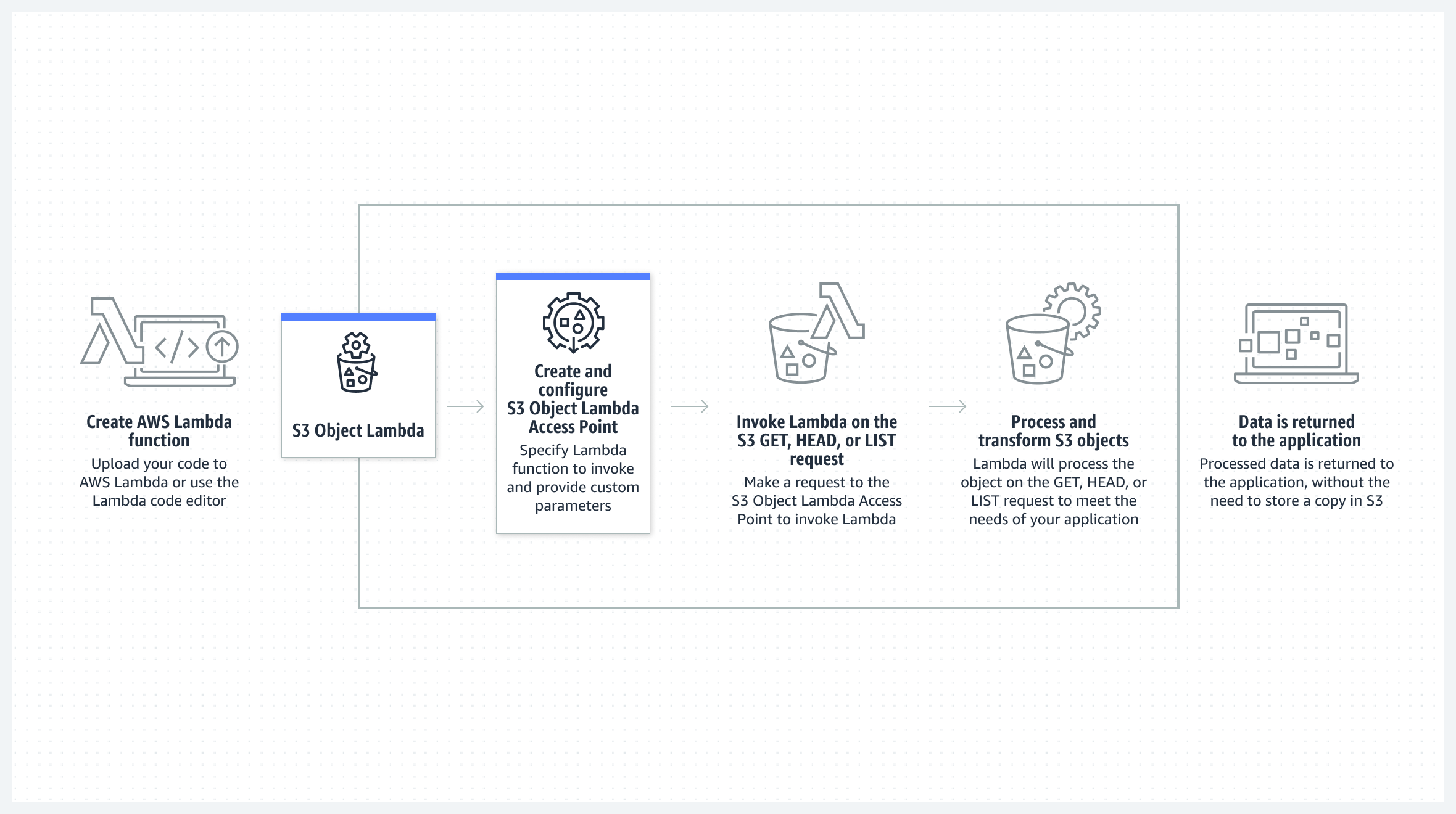 - When a request is made to retrieve an object from S3, the request is routed to your Lambda function, which can modify the object data or metadata before returning it to the requester.