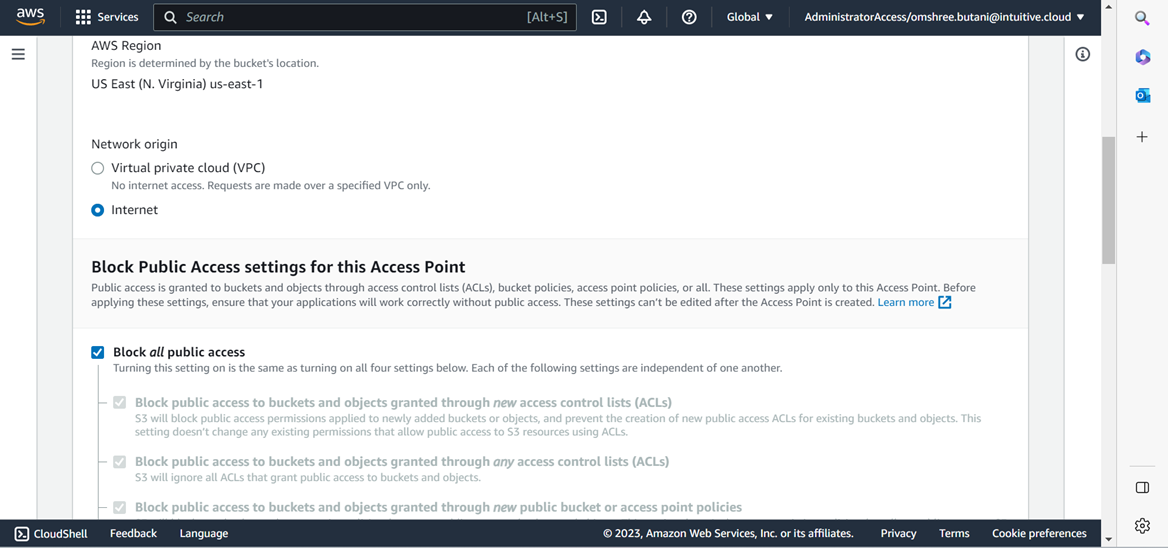 - After creation, the S3 Access Point will be visible in the list when you navigate to the "Access Points" section in the left sidebar.