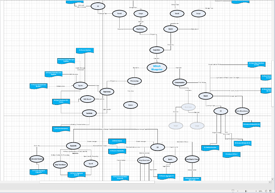 After creating all blueprints, a secondary analysis has been done in order to identify the different sets of criteria that will help match the necessary blueprints to actual business needs. After completing this work, the client has also created a web application that asks the end user about the parameters and finally suggests the most suitable blueprint for the use case.