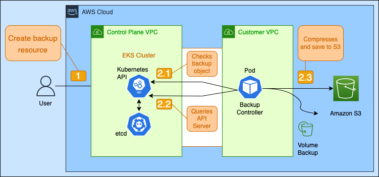 Velero backup and restore operations was declared as Kubernetes Custom Resource Definition (CRD) objects and were managed by controllers that process these new CRD objects to perform backups, restores, and all related operations.