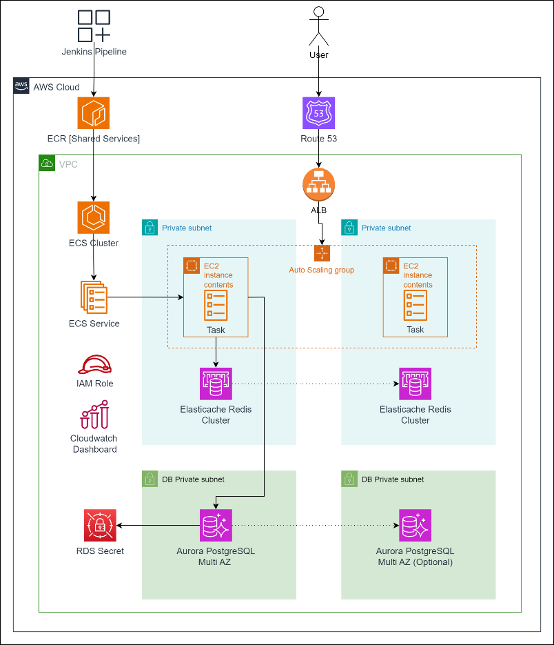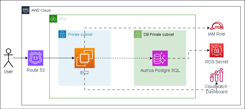 - Aurora PostgreSQL: migrated the database hosted on EC2 to Aurora, benefiting from automated backups, scalability, and better failover mechanisms. Aurora's performance and high availability reduce the need for manual database management.